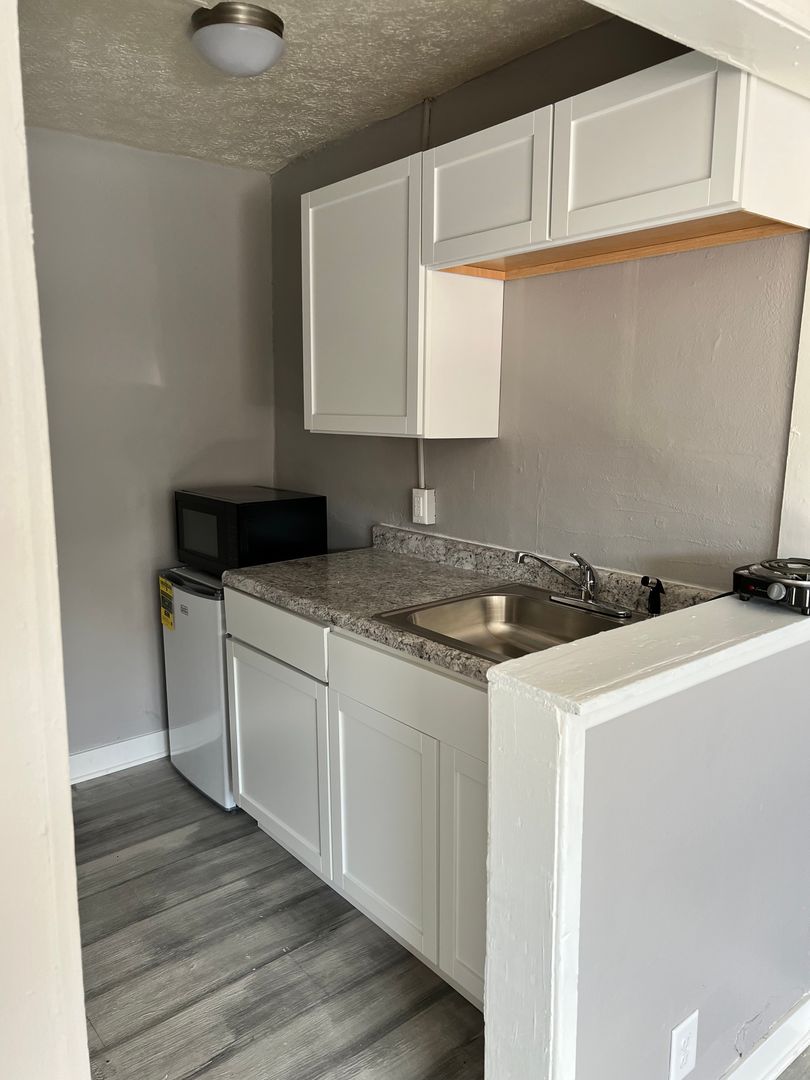 Recently remodeled studio apartment! This unit is a 5 minute drive from downtown Lafayette and 10 minutes from West Lafayette. There is also a city bus stop located conveniently within the complex parking lot as well. The rental price comes with the following utilities included: water, electric, gas, trash, and sewage. The units come equipped with a mini fridge, microwave, and hotplate. There are coin operated washer and dryers on-site for tenants to use.